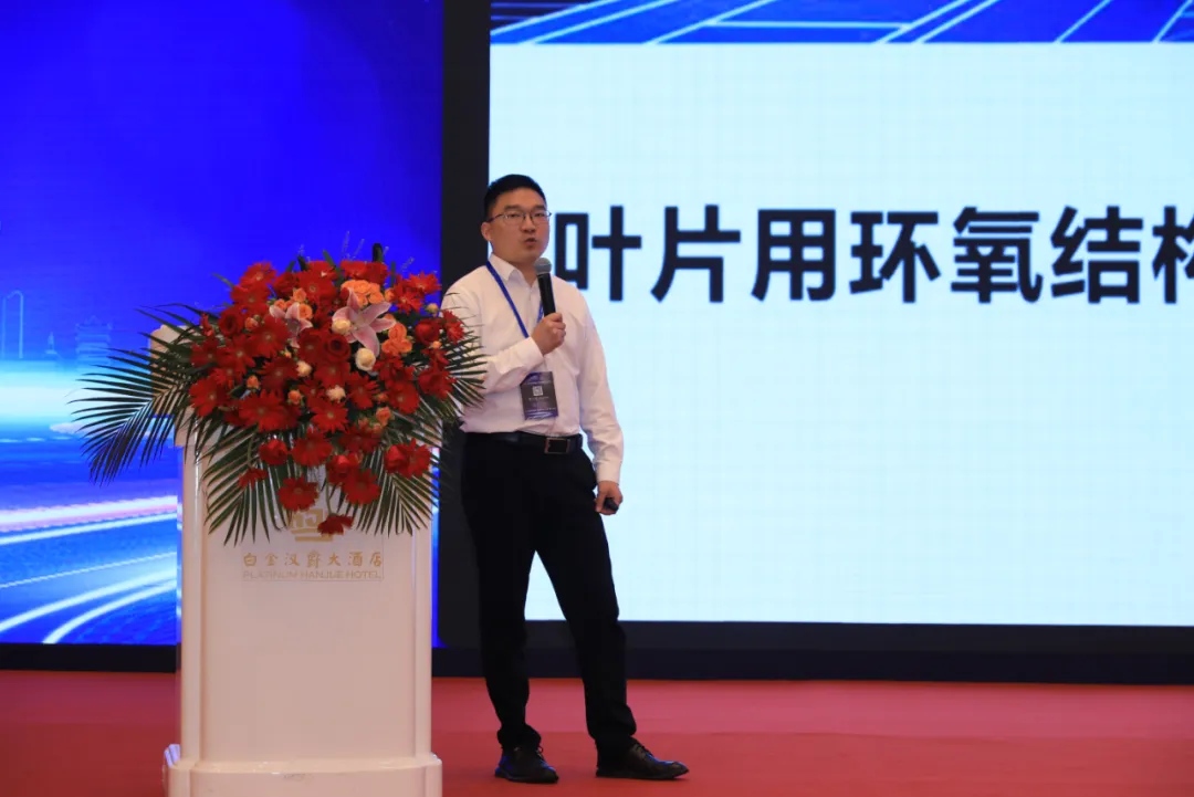 专家座谈环节之后,来自时代新材风电产品事业部工程中心的王主任分享了叶片用环氧结构胶的运用和评估测试。在演讲中,王主任分享了胶粘剂粘接技术在叶片的组装过程中的运用,同时分享了在风电叶片的粘接工艺中如何对环氧结构胶粘剂进行评估测试。王主任提出,叶片在运行中叶尖部分速度很快,对胶粘剂本体的强度要求很高,所以首先需要评估胶粘剂的本体强度。其次叶片可能会受到一些冲击工况,所以粘接结构的抗冲击性能也是需要评估的项目。叶片在运行中还可能遇到扭转等产生的剪切力,所以需要进行搭剪强度的测试,同时T型剥离测试被用来评估粘接结构的抗剥离性能。最后,王主任对工艺参数如放热峰,适用期等参数的评估也做了详细的分享。